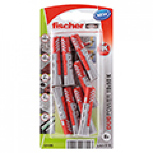 De fischer DUOPOWER heeft een zeer hoge bevestigingswaarde door de 2 componenten: De grijze component van kwalitatief hoogwaardig nylon activeert, afhankelijk van het bouwmateriaal, automatische het optimale werkingsprincipe (spreiden, tikken, knopen) voor het optimaal houvast. De expansievleugels van de rode component ondersteunen de betrouwbare spreiding en biedt extra veiligheid voor de grijze component. De schroef gewoon indraaien en tot slot goed „aantrekken“. De schroef niet de vast aandraaien. De bij de kop aangebrachte rand voorkomt, dat de plug in het boorgat glijdt.