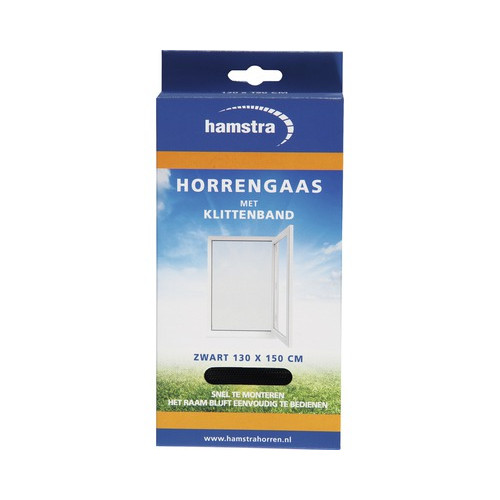 Hamstra horgaas klittenband (zwart) is een praktische en doeltreffende manier om insecten te weren. Het horrengaas is doeltreffend en zeer gemakkelijk te bevestigen dankzij het klittenbandsysteem. Het overtollige gaas knip of snij je zelf eenvoudig af. Het horgaas klittenband is geschikt voor draairamen met een maximale kozijnopening van 130 x 150 cm.
