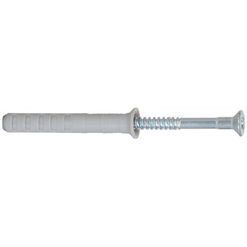 De fischer Nagelplug N-S met verzonken kop bestaat uit een plug van kwalitatief hoogwaardig nylon en een gegalvaniseerde nagelschroef. Deze zijn voor een snelle montage reeds vooraf gemonteerd. De nagelplug wordt in de tijdbesparende doorsteekmontage door het montagestuk gevoerd. Bij het intikken van de nagelschroef spreidt de huls open en verankert in het materiaal. De fischer Nagelplug N-S met verzonken kop is ideaal voor de bevestiging van houtconstructies in allerlei bouwmaterialen in de interieurbouw.