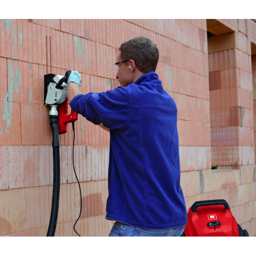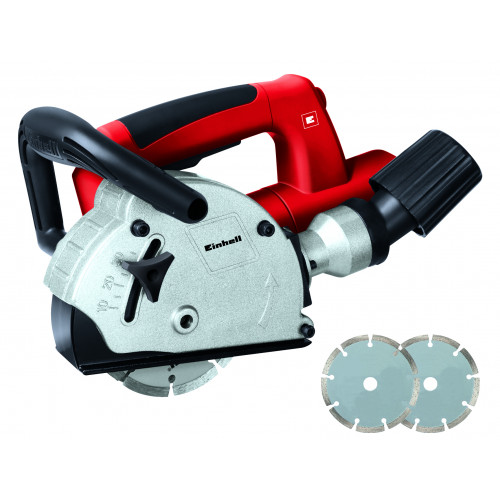 De Einhell TC-MA 1300 muurfrees is een krachtige en robuuste machine, die snel en eenvoudig rechte sneden maakt in baksteen, gips en soortgelijke materialen. Een ideale machine voor klussers, die regelmatig werken rondom gas- en waterleidingen of kabelgoten. Een groot handvat op de machine bevordert een veilige manier van werken, evenals een vooraf in te stellen zaagdiepte. Hiermee voorkom je onder meer dat je buizen of leidingen beschadigt tijdens het uitvoeren van werkzaamheden. Krachtige motor voor verschillende klussenDeze muurfrees is voorzien van een krachtige motor, met een vermogen van 1320 Watt. Hiermee is het mogelijk om nauwkeurige sneden te maken in vrijwel iedere soort bouwmateriaal. Door de ‘soft start’-functie van deze machine komt de motor rustig op gang bij de start van je werkzaamheden. Zo is het heel eenvoudig om de controle over de machine te behouden tijdens het frezen van muren.Handige overbelastingsindicator Om de motor van de machine te beschermen tegen oververhitting als gevolg van een overbelasting, zit er een handige indicator op de machine. Deze indicator stopt de machine automatisch als er sprake is van een overbelasting van de motor. Vooraf in te stellen zaagdiepteBij het uitvoeren van zaagwerkzaamheden met deze muurfrees speelt precisie een grote rol. Einhell speelt hierop in, door je vooraf een zaagdiepte te laten kiezen tussen acht en dertig millimeter. Zo behaal je een optimaal resultaat, zonder bijvoorbeeld leidingen of kabels te beschadigen tijdens het frezen. Vergrendeling voor het verwisselen van slijpschijvenOm het verwisselen van de slijpschijven, waarvan er standaard twee worden meegeleverd bij de aanschaf van deze muurfrees, te vereenvoudigen, beschikt de machine over een handige vergrendelfunctie voor de as. Zodra de functie geactiveerd is, kun je de diamantschijven eenvoudig omwisselen. Werken op een schone werkplaatsVeiligheid en een schone werkplaats gaan hand in hand, ook bij de muurfrees van Einhell. De machine is voorzien van een functioneel stofafzuigsysteem met bajonetsluiting. Zo heb je hier tijdens het uitvoeren van werkzaamheden zelf geen last van. Het is mogelijk om een stofzuiger op de bajonetafsluiting aan te sluiten, om het vrijgekomen stof direct af te voeren. De Einhell TH-MA 1300 is een praktische machine, die muurfreeswerkzaamheden in baksteen, gips of andere bouwmaterialen erg eenvoudig maakt. De machine wordt geleverd in een handige transport en opbergkoffer.De belangrijkste specificaties van de machine:- Vermogen: 1320W- Aansluiting: 230 V / 50 Hz - Onbelast toerental: 9000 t/min. - Slijpschijf Ø125mm - Sleufdiepte: 8-30mm - Sleufbreedte: 8-26mm - Geleverd in kunststof opbergkoffer - Geleverd inclusief 2 slijpschijven van Ø125mm - Softpainted- Deze machine maakt deel uit van de Einhell Classic-productlijn- 2 jaar fabrieksgarantie