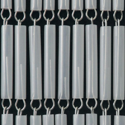 De hulzen zijn gemaakt van polyethyleen. Dit is een flexibele kunststof die niet breekt als het tussen de deur komt. De geregen metalen haken in de hulzen geven het gordijn een ijzersterke kwaliteit. De haken zijn van gegalvaniseerd staaldraad, wat roest voorkomt. Het geeft tevens genoeg gewicht om sluitend te blijven hangen.